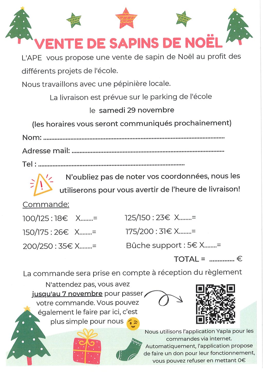 Vente de sapins de Noël au profit de l'APE de l'école du Chemin Neuf